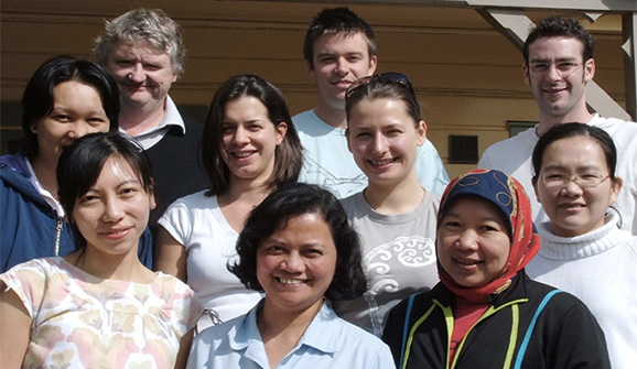 Professor Michael McManus (top left) in 2003, with students who were then part of his laboratory. (Photo Courtesy of Massey University)