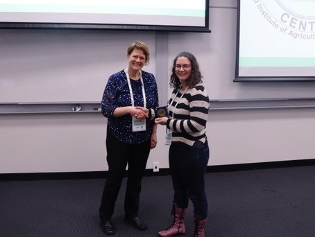 2025 Roger Slack (ECR) Award winner Soledad Perez-Santangelo and NZSPB President Lynette Brownfield at Plant Science Central.